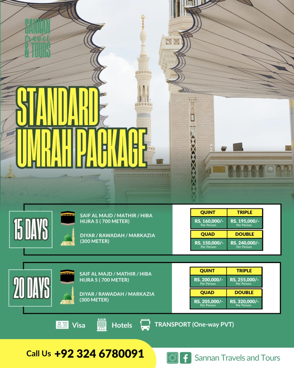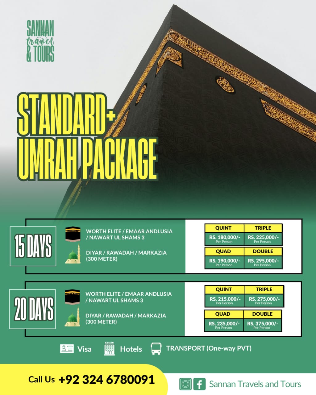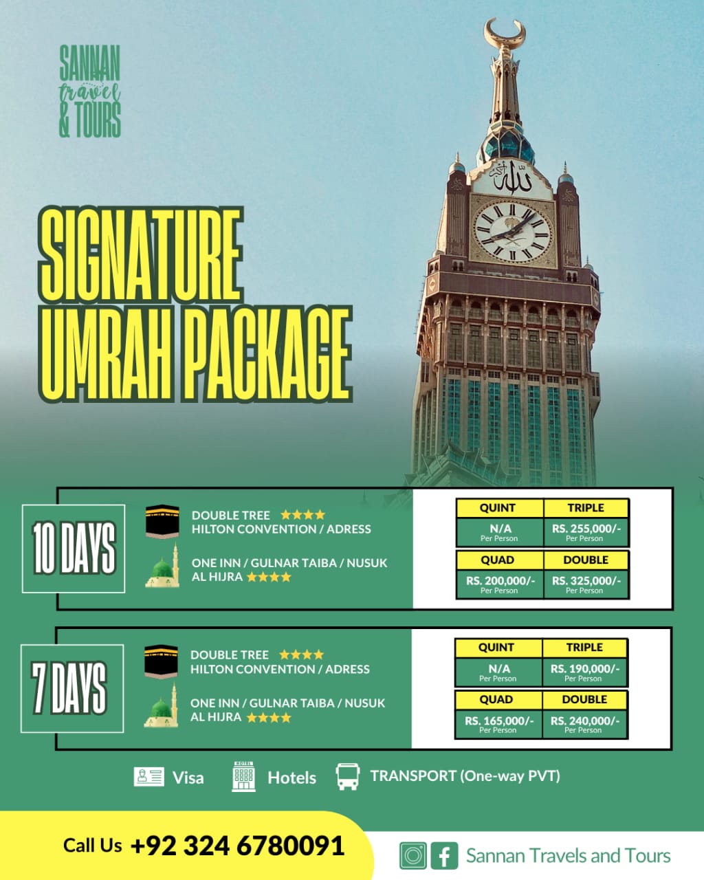 Explore the world with Best Hajj & Umrah Agency in Pakistan Sannan Travels & Tours! Whether you’re embarking on a sacred Hajj or Umrah journey or planning an exciting trip abroad or within the country, we ensure a smooth, comfortable, and stress free travel experience from start to finish.