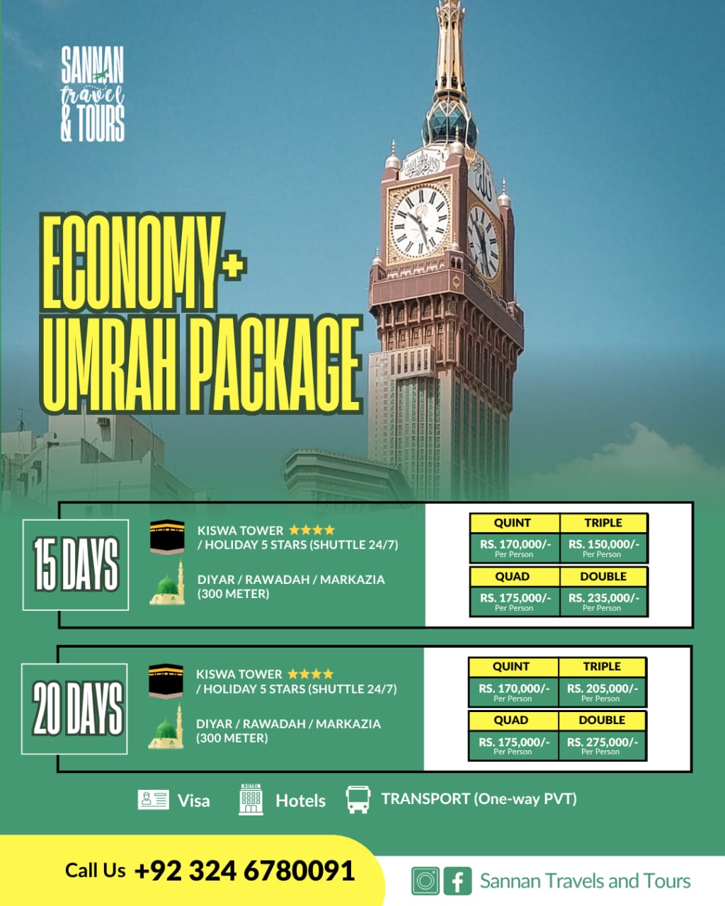 Journey with confidence with Sannan Travels & Tours. From sacred Umrah & Hajj pilgrimages to thrilling international and domestic tours, we provide seamless travel experiences with comfort, trust, and excellence.